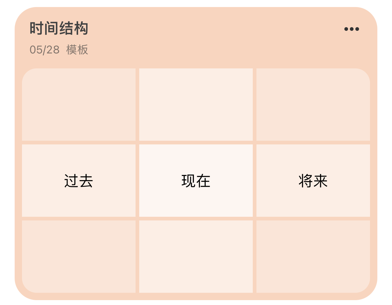 幸好,GirdMemo可以解决这个问题,因为你使用GridMemo复习的内容正是在之前阶段自己亲手制作的九宫格。因为九宫格已经将知识的内容和逻辑很好的封装了起来,每一个格子就是一个完整的知识卡片,阅读速度极快。又由于卡片是学习者自己创作的,几乎没有理解成本,一眼扫过去就可以完成复习。甚至可以说,你并不是在复习,而是“再次欣赏”自己创造的知识积木。更为重要的是,这些格子是在学习者在第一次学习的时候就已经做好的,如果用写格子代替记笔记的过程,就完全不需要专门的创作过程。