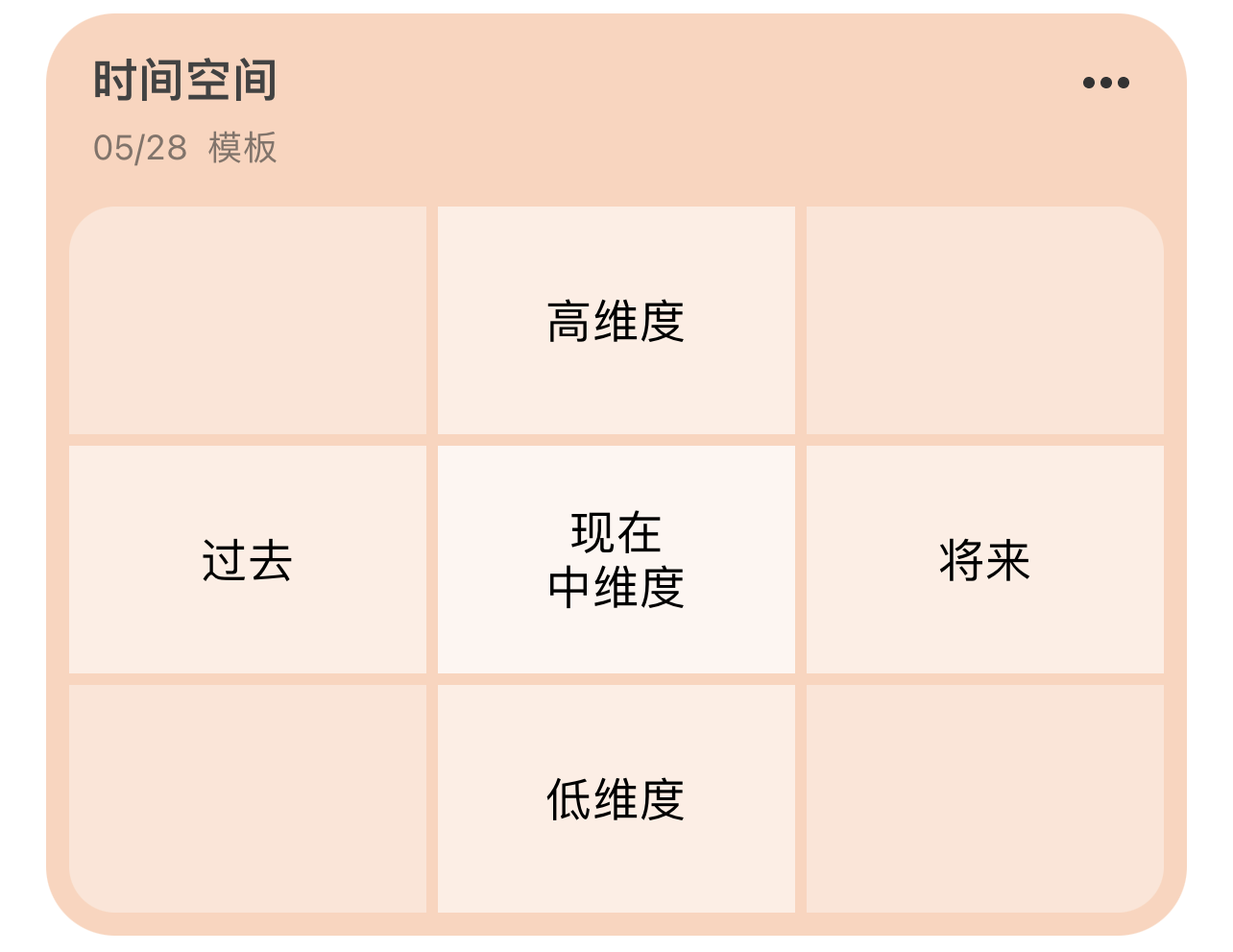 用上、中、下、左、右的五个格子代表时空变量的逻辑关系等等