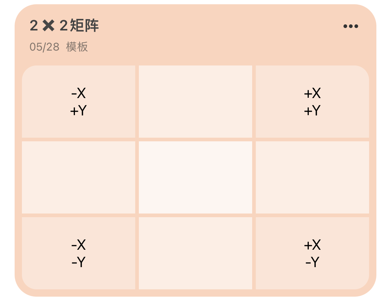 GirdMemo看上去只是一个简单的九宫格,但实际上却是一个简化版的记忆宫殿。它只保留了9个格子,分别对应我们每个人都最熟悉的空间方位:上、下、左、右,中,左上、右上、左下和右下。你可以一次性把九个知识点放进格子里进行记忆。