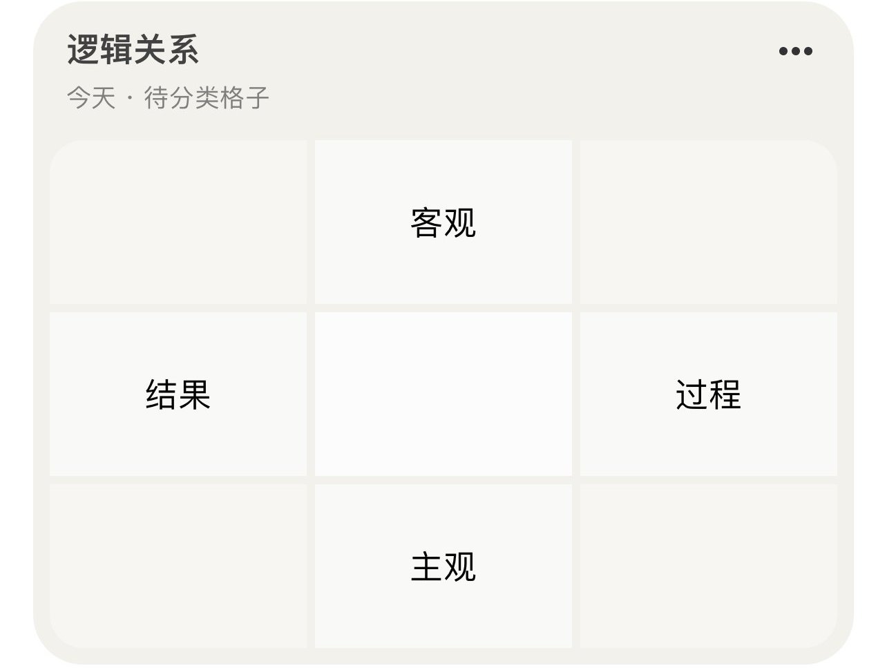 比如,“知识”这个概念,它是一种高维的、抽象的、在你头脑中的存在的事物,你自然而然会把这个概念放在GirdMemo位于上方的格子中。